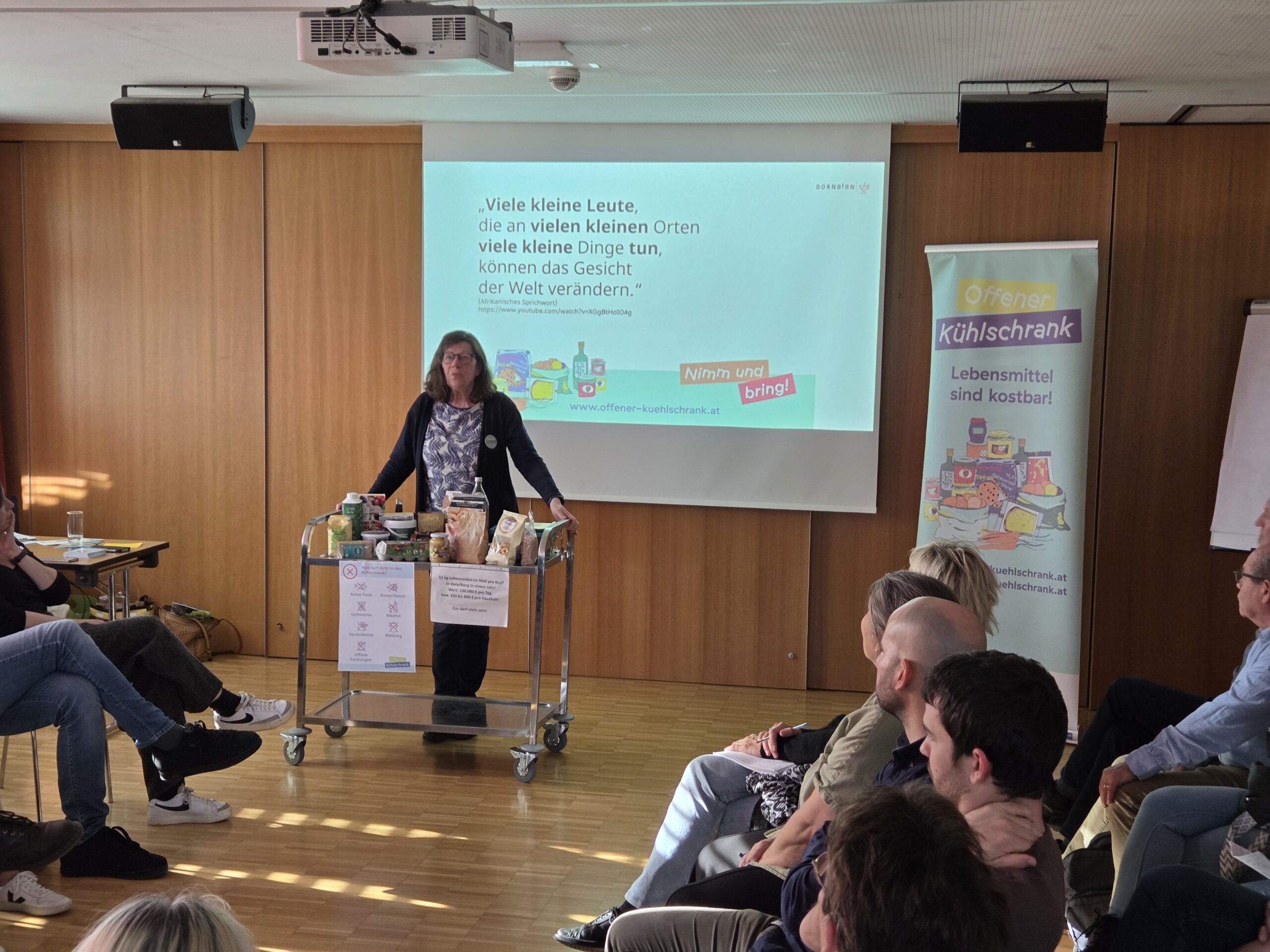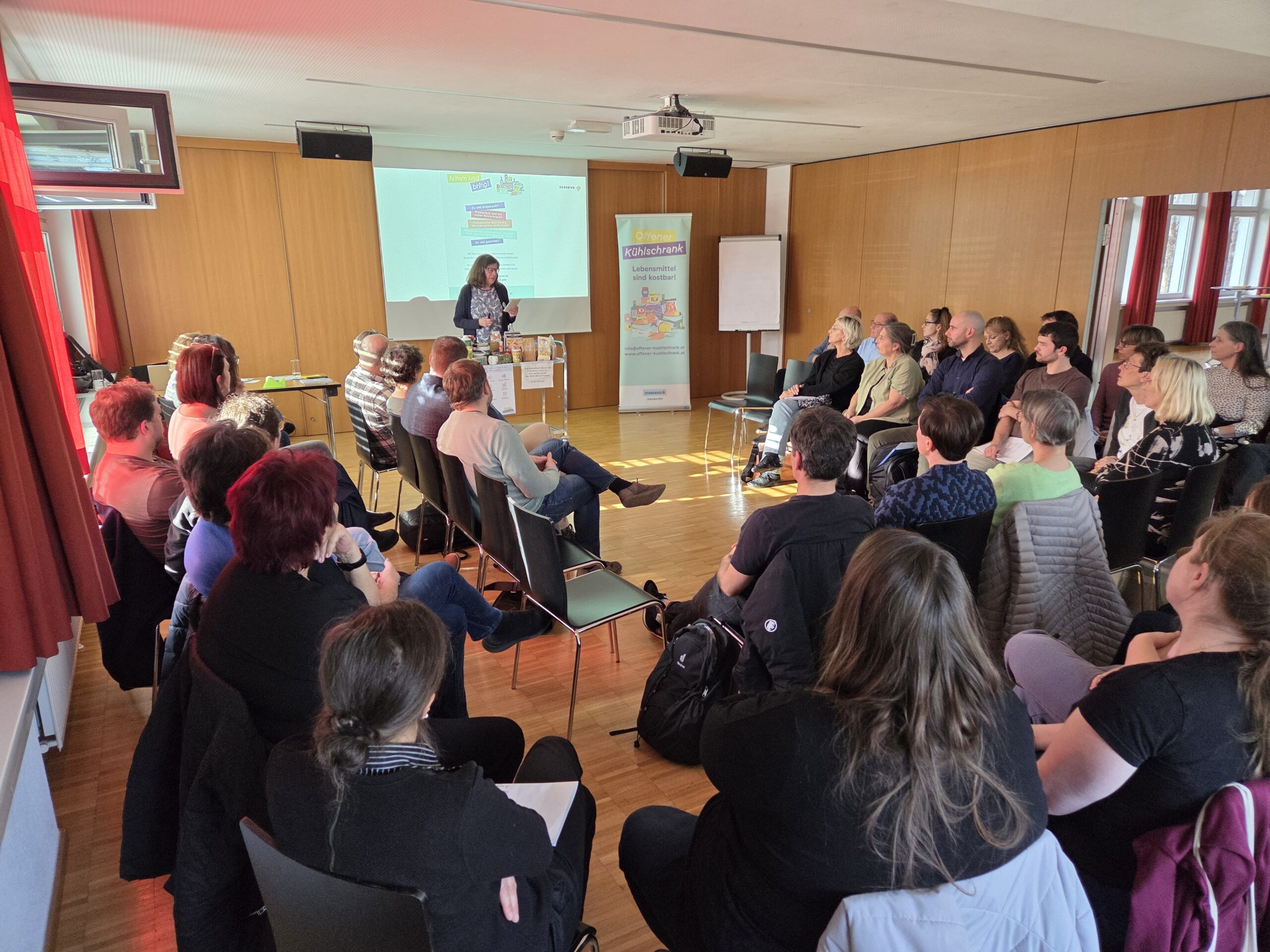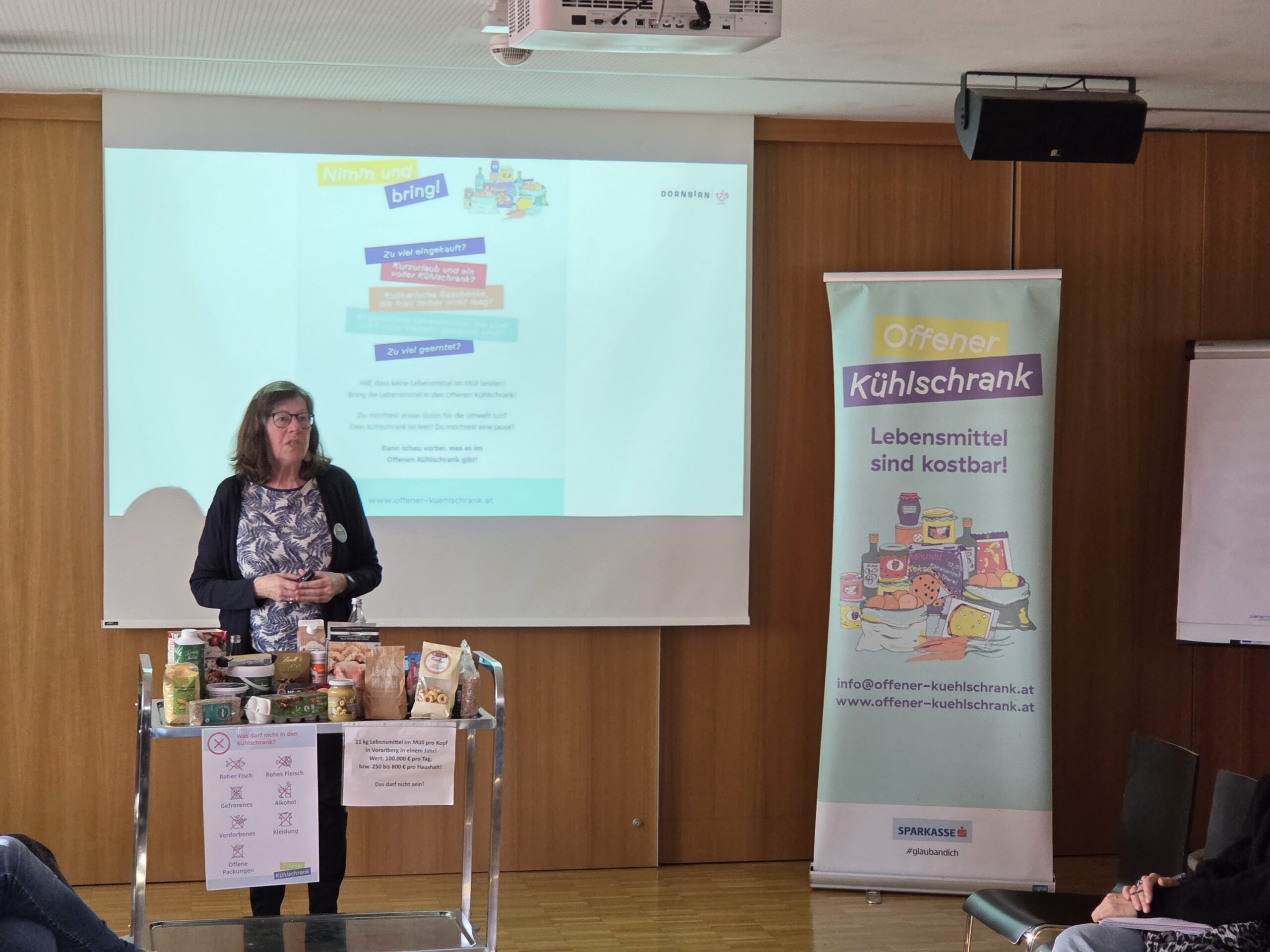 Ca. 50 Personen waren beim Treffen der Systempartnerinnen und Systempartner des Sozialzentrum Treffpunkt an der Ach der Stadt Dornbirn. Es kam zu einem interessanten Austausch zwischen den Anwesenden. Bei dieser Gelegenheit konnte Ingrid Benedikt den Offenen Kühlschrank vorstellen und viele interessante Fragen beantworten.